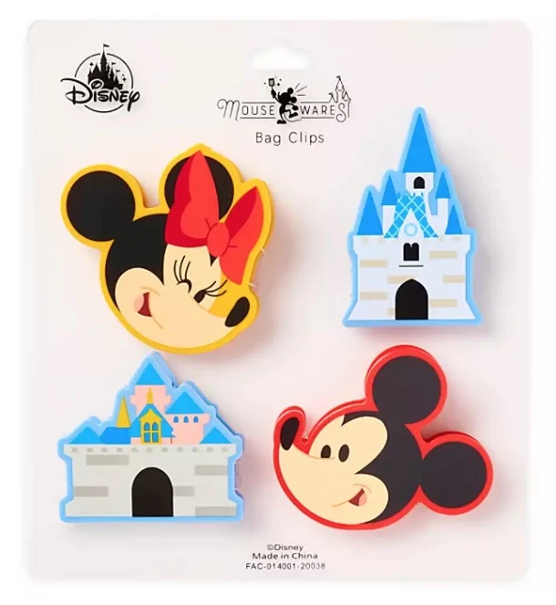Keep your snacks—and Disney Parks memories—fresh with this charming set of four bag clips. Shaped like Sleeping Beauty Castle, Cinderella Castle, Mickey and Minnie, these colorful clips are a magical addition to your kitchen accoutrements.