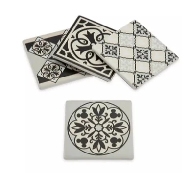 Add an elegant accent to your décor with this set of four ceramic coasters from our Disney Homestead Collection. Featuring a different pattern on each coaster, the designs integrate Mickey icons.