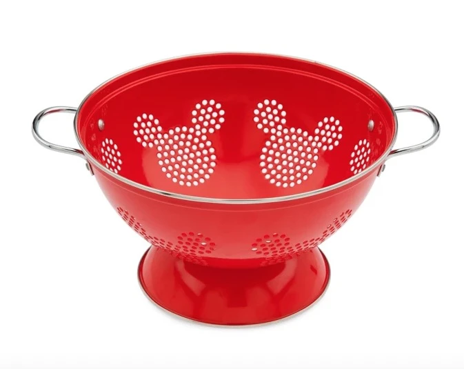 Mickey takes the strain out of cooking with this colorful colander. Part of our Disney Eats Collection, the red metal design is perforated with Mickey icons, making it fun for both grown-ups and kids alike!