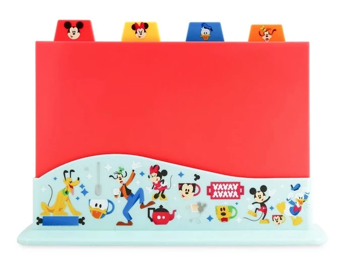 Enjoy a slice of the good life when you use our Mickey Mouse and Friends Cutting Board Set. The set includes four colored chopping boards, each with their own character tab, and a handy holder making this fun set a cut above the rest.