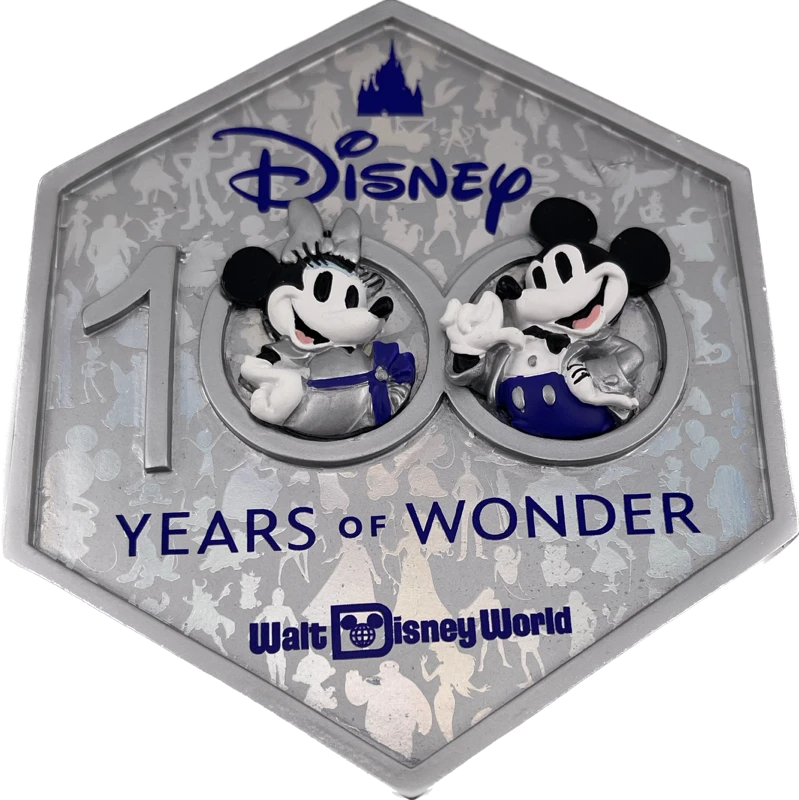 This large magnet will be sure to remind you of Disney 100 years if Wonder. Features Mickey and Minnie and Direct from Walt Disney World.