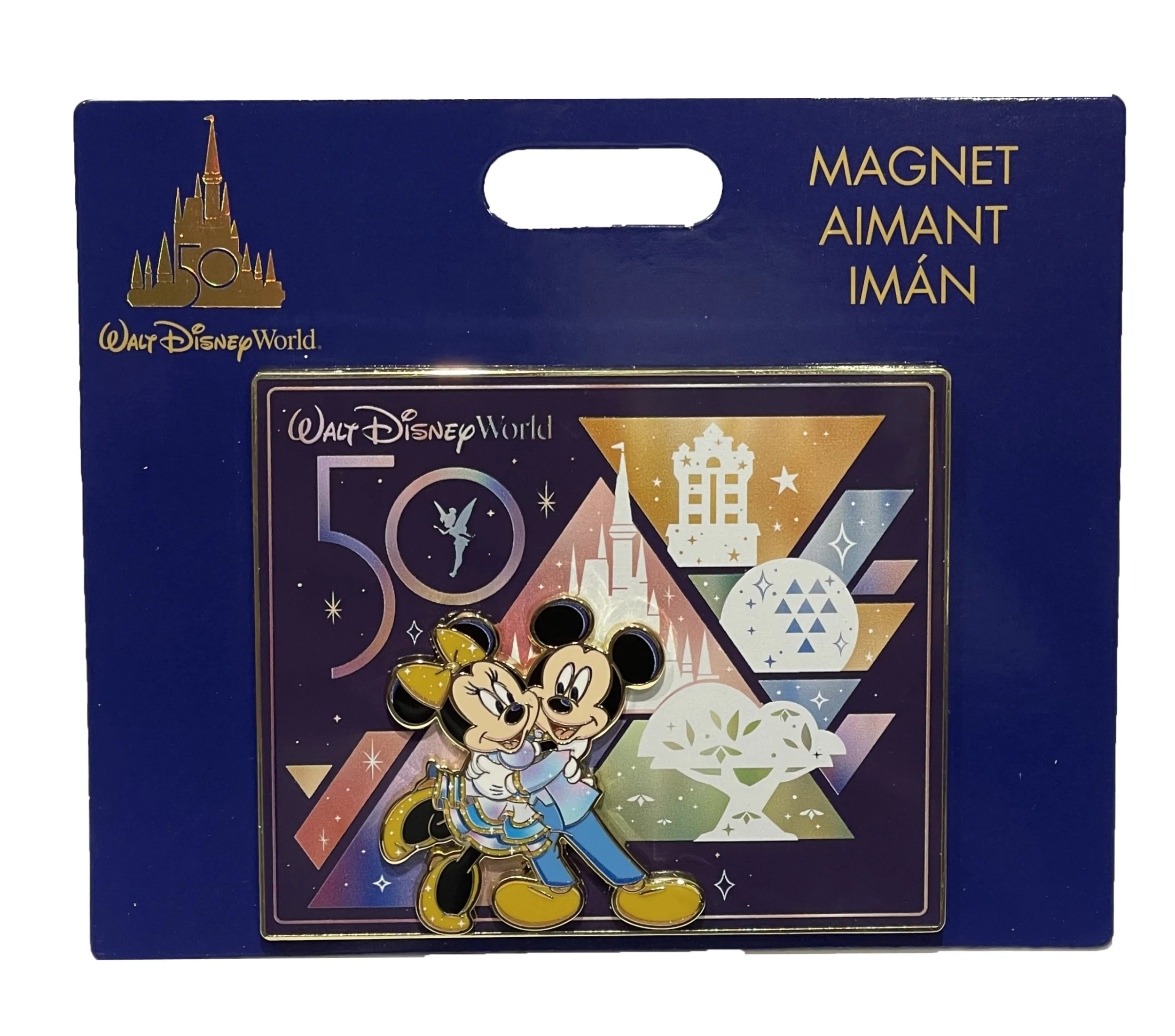 Celebrate Disney’s 50th Anniversary with this Mickey and Minnie 4 Parks metal Magnet.