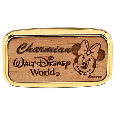 Happy memories of your visit to Walt Disney World will stick around with this Minnie Mouse Magnet. Gold finish surround is inset with engravable cherry wood that’s burninshed with Walt Disney World logo and Minnie Mouse.