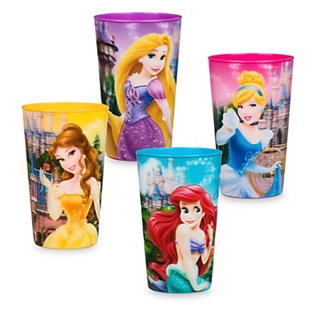 - Set includes four tumblers: Cinderella, Belle, Ariel, and Rapunzel