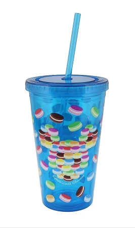 This plastic tumbler has a twist tight lid and straw, to make for a worry-free fun travel, and features Epcot Mickey Macarons.