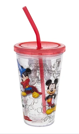 Mickey is full of poses with all his colorful designs and sketches. This plastic tumbler has a twist tight lid and straw, to make for a worry-free fun travel.