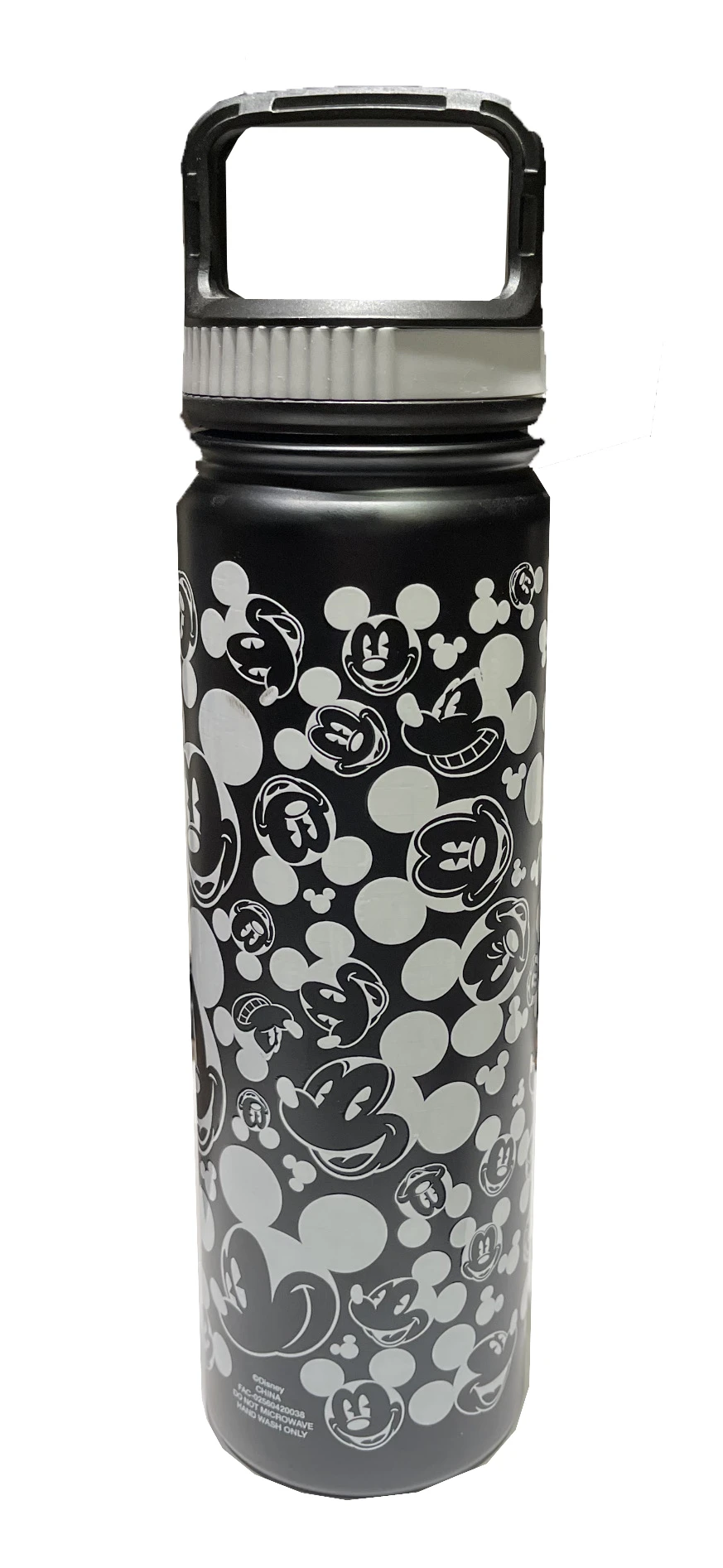Stay hydrated the adorable way with this stainless steel water bottle with Mickey’s smiling faces allover in Black and White.