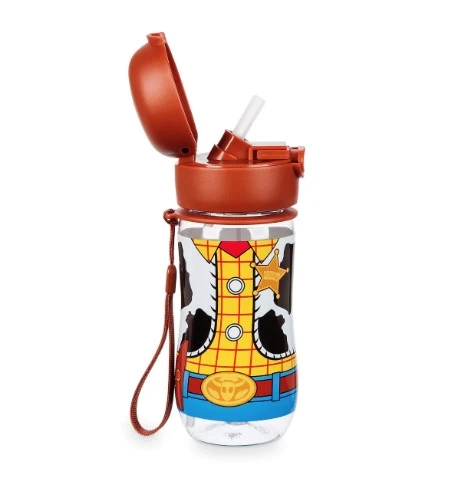 Your little cowpoke works up a powerful thirst riding the range and Sheriff Woody is there to provide some refreshment. Featuring a push-button release to the flip-top lid, this contured water bottle also has a leash attached so you can keep it lassoed.
